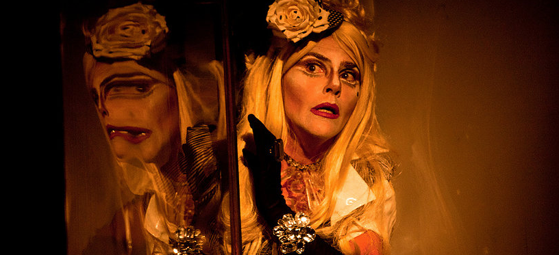 Liane Venturella (personagem Nehrjas), Fabiane Severo (personagem Lynndie - participação especial) e Nelson Diniz (personagem David Kelly) no espetáculo Palácio do Fim. Foto: Regina Peduzzi Protskof.